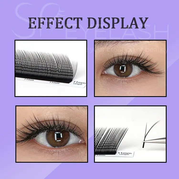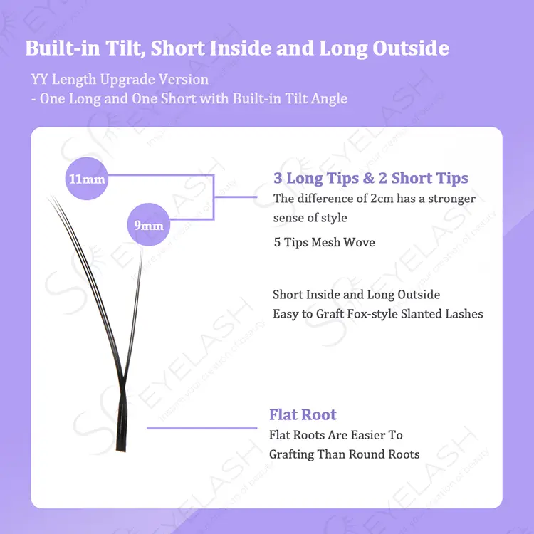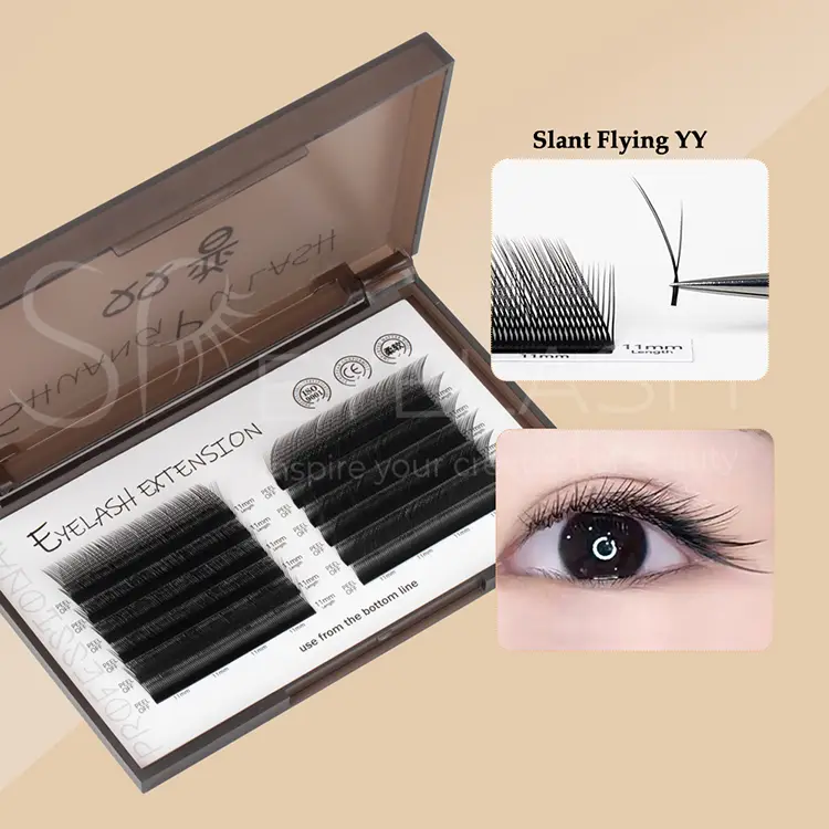 उत्कृष्ट डोळ्याच्या मेकअपची सोयीस्कर निर्मिती एसपी आयलाश फ्लाइंग वाय शेप लॅश्स बायोमिमेटिक फॉक्स डोळ्याच्या आकाराचा अवलंब करते, ज्यामध्ये लहान आत आणि लांबलचक बाहेरील नैसर्गिक वक्र डिझाइनसह नवशिक्यांसाठी लोकप्रिय "फॉक्स आय" वरच्या परिणामास आकार देणे सोपे होते. "तीन लांब आणि दोन शॉर्ट" पाच क्लस्टर जाळी विणण्याच्या प्रक्रियेसह, 2 सेमी लेयर डिफरन्स डिझाइनसह एकत्रित, नाविन्यपूर्ण 11 मिमी+9 मिमी मिश्रित लांबीचे संयोजन नैसर्गिक फ्लफी फ्लाइंग इफेक्ट तयार करते. अनन्य फ्लॅट रूट फिटिंग तंत्रज्ञान नैसर्गिक डोळ्यांसह तंदुरुस्ती वाढवते, ज्यामुळे परिधान करण्याची स्थिरता 30%पेक्षा जास्त वाढते.