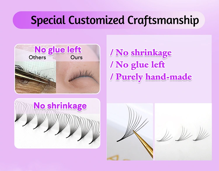 एसपी आयलॅश लूज प्री मेड चाहते उच्च दर्जाचे पीबीटी सिंथेटिक रेशीम वापरुन हस्तनिर्मित आहेत, खोटे डोळ्यांना एक उच्च-गुणवत्तेची, फ्लफी आणि हलके वैशिष्ट्य देते, ज्यामध्ये मऊ आणि खोल मॅट ब्लॅक इफेक्ट आहे. लोगो सानुकूलन, घाऊक पर्याय आणि द्रुत समस्या सोडवण्यासह एसपी आयलॅश सर्वोत्तम विक्री नंतरची सेवा प्रदान करते. आपल्याकडे काही प्रश्न असल्यास, कृपया आमच्याशी संपर्क साधा आणि आम्ही आपल्याला समाधानकारक समर्थन सेवा प्रदान करू.