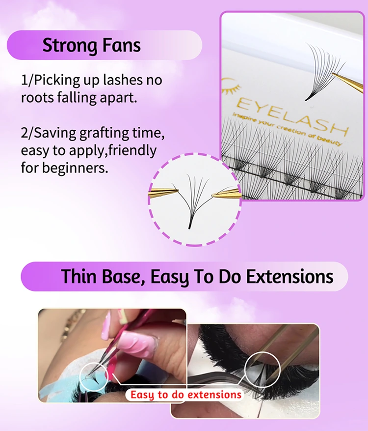 खर्चाची प्रभावीता: सैलप्रेच्या एका बॉक्समध्ये आयलॅश चाहत्यांनी 500 चाहते (± 2%) असतात, जे नियमितपणे डोळ्याच्या वेश्यांपेक्षा 5 पट असते आणि प्रत्येकाची किंमत फक्त काही सेंट असते. आमच्या 8-15 मिमीच्या डोळ्यांत एका सेटमध्ये लांबीमध्ये मिसळले जाऊ शकते, म्हणून आयलॅश स्टायलिस्टना ग्राहकांची सेवा देताना एकच डोळ्यांची तयारी करण्याची आवश्यकता नाही, जे आयलाश स्टोरेज स्पेसला अधिक चांगले वाचवू शकते.