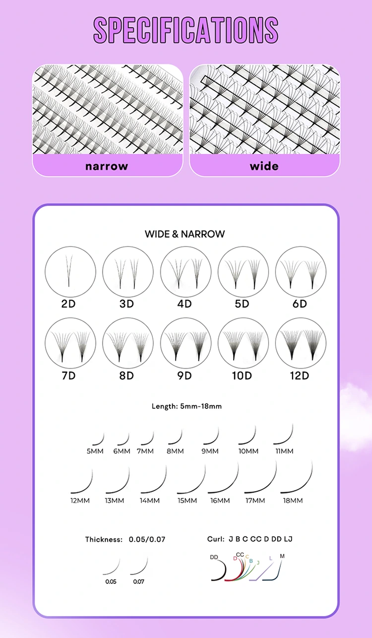 सर्वोच्च गुणवत्ता: आमचे एसपी आयलॅश लूज प्री बनविलेले चाहते उच्च गुणवत्तेच्या कोरियन पीबीटी सिंथेटिक रेशीमचे बनलेले आहेत आणि व्यावसायिक डोळ्याच्या तज्ञांनी एक -एक करून हस्तनिर्मित केले आहेत. हे एक मऊ आणि खोल मॅट ब्लॅक इफेक्ट सादर करते, यामुळे उच्च-गुणवत्तेची, चपखल आणि हलके डोळे तयार होते.