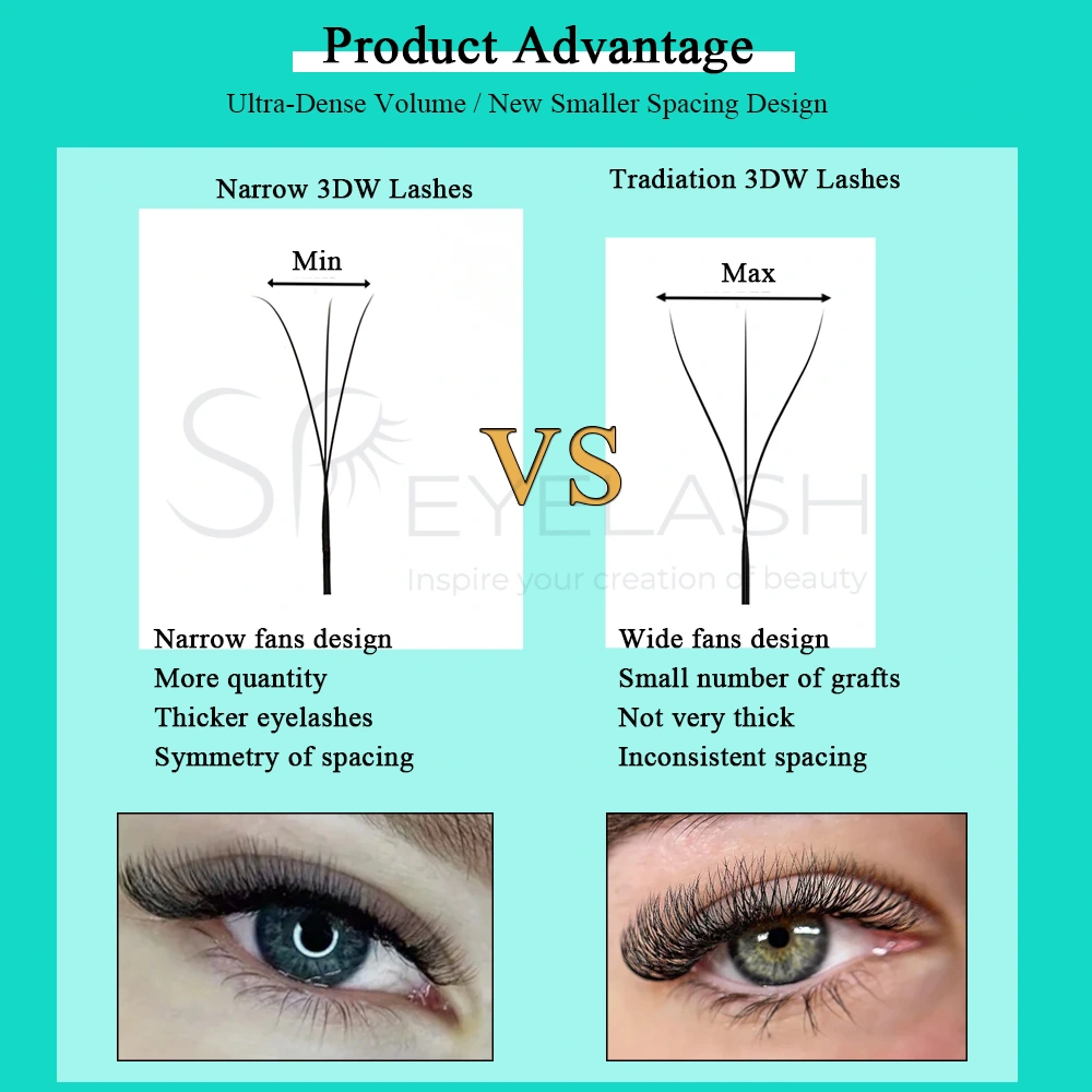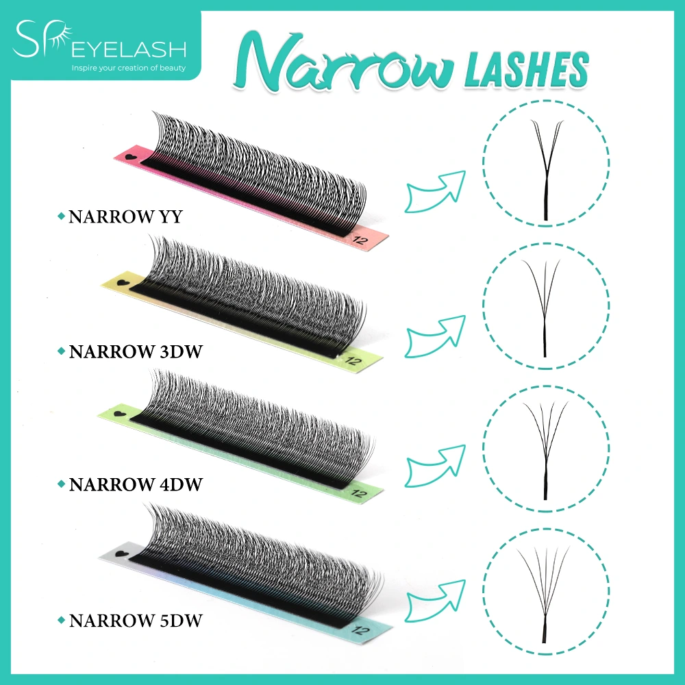 पारंपारिक वायवाय-आकाराच्या लॅशच्या तुलनेत, आमच्या अपग्रेड केलेल्या अरुंद वाय लॅश विस्तारांमध्ये एक लहान ओपनिंग आणि नितळ रेषा दर्शविली गेली आहे, ज्यामुळे अखंडपणे कनेक्ट केलेले आणि अधिक विपुल फटके प्रभाव निर्माण होतो. कॉम्पॅक्ट व्यवस्था लॅशमधील अंतर कमी करते, एक नैसर्गिक परंतु नाट्यमय परिपूर्णता तयार करते. उच्च-घनतेच्या लॅशची व्यवस्था सखोल आणि फुलर फटके रेषा आकार देते, तर अरुंद फॅन डिझाइन एक सुंदर आणि अधिक अगदी देखावा सुनिश्चित करते. दरम्यान, विस्तारित लॅश बँडसह जोडलेला लहान फॅन बेस एक मोठा बंधन क्षेत्र तयार करतो, ज्यामुळे आसंजन आणि टिकाऊपणा वाढतो आणि वाइड-फॅन डब्ल्यू-आकाराच्या लॅशसह उद्भवू शकणार्या गोंधळ आणि असमानता टाळते.