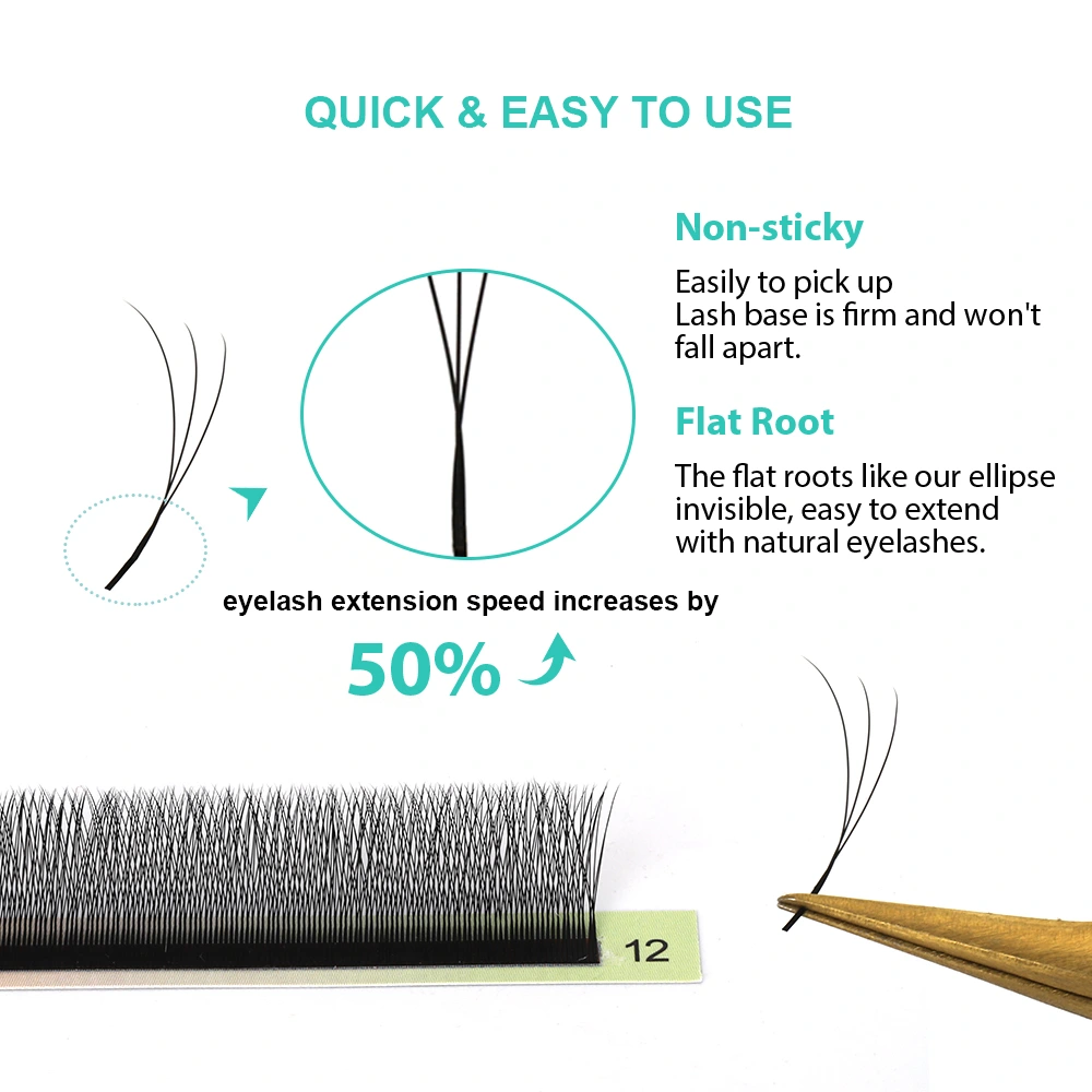 हे उत्पादन अचूक वाय-आकाराच्या संरचनेसह एक अद्वितीय अरुंद फॅन बेस एकत्र करते. प्रत्येक क्लस्टर पेटंट तंत्रज्ञानाचा वापर करून 4 लॅशपासून हाताने विणलेले आहे, अभूतपूर्व प्रकाश आणि आराम मिळविताना वाय-आकाराच्या लॅशचे क्लासिक व्हॉल्यूम टिकवून ठेवते.